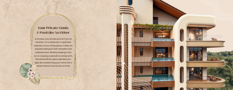 Keshavaa Acassa offers a refined, resort-like living experience in Candolim, Goa. This boutique development features super spacious 1 and 2 BHK homes, each designed as a personal retreat with a plunge pool in every apartment. The residences are defined by bohemian-inspired interiors, warm textures, and expansive layouts that enhance light, airflow, and comfort. Semi-furnished homes with high-quality finishes create spaces that feel relaxed, elegant, and easy to live in. Thoughtfully landscaped surroundings, calm common areas, and round-the-clock security add to the sense of privacy and ease. Located in a peaceful yet well-connected part of Candolim, Acassa is well suited for holiday living, extended stays, or long-term investment.
